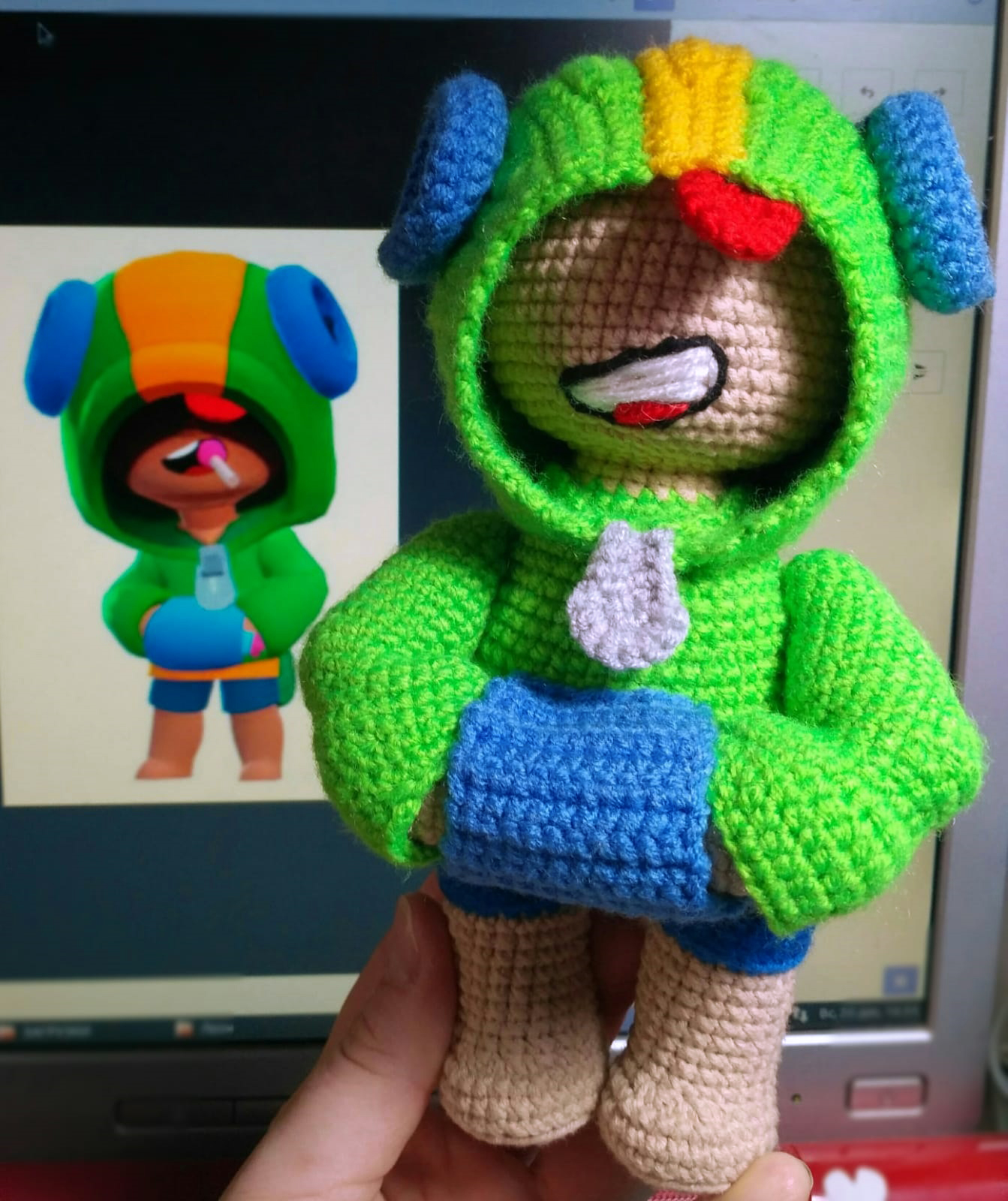 PDF Леон крючком. FREE crochet pattern; Аmigurumi toy patterns. Амигуруми схемы и описания на русском. Вязаные игрушки и поделки своими руками #amimore - персонаж из мобильной игры Brawl Stars, кукла, Бравл Старс, боец Леон.