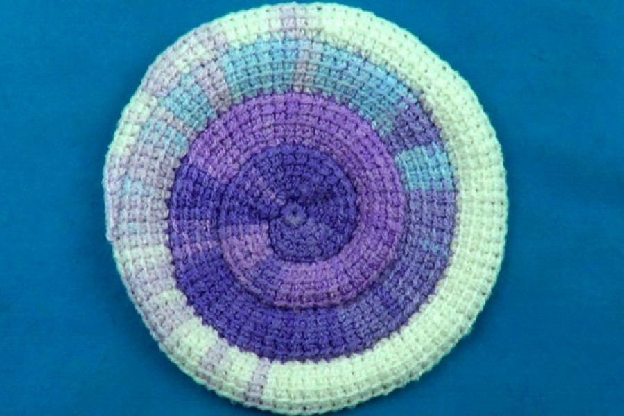 Тунисская спираль на 6 петель Тунисская спираль на 6 петель может быть выполнена любого размера, причем вязать можно обычным крючком. Таким способом удобно вязать подставки под чашки, салфетки и коврики.