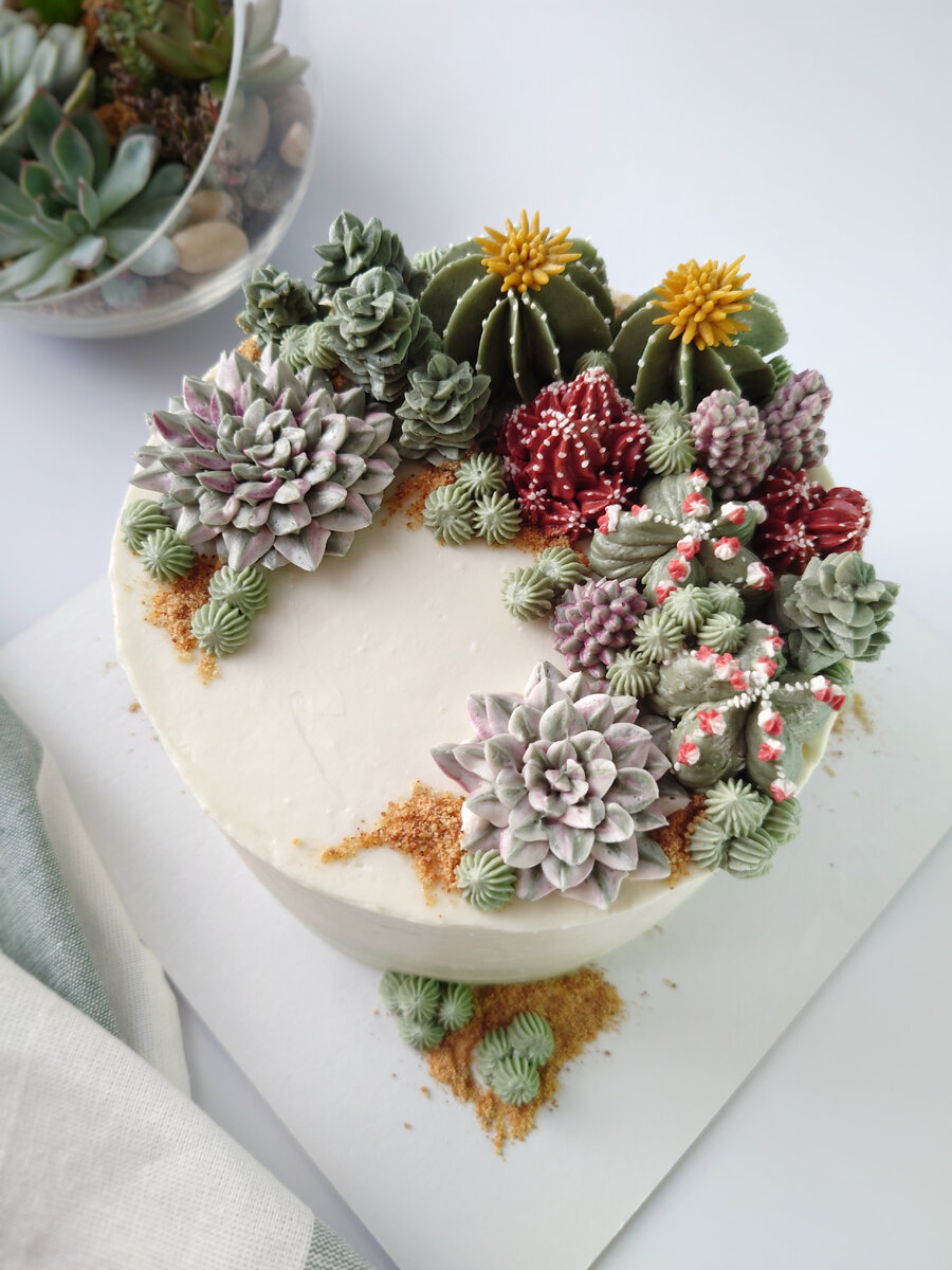 Кактусы и суккуленты из крема. Какие насадки нужны для создания таких растений? Ответ: насадки под номером 4. Как пользоваться кремами для тортов и мастик для украшения торта? Ответ: крем для торта всегда необходимо предварительно охладить в холодильнике. Какой крем лучше всего использовать для украшения тортов? Ответ: сливочный крем – самый лучший вариант для украшения. В домашнем кондитерском деле часто используют айсинговый крем. Это такой же крем, но только для украшения пирожных, а не то…