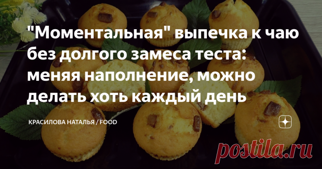 "Моментальная" выпечка к чаю без долгого замеса теста: меняя наполнение, можно делать хоть каждый день Когда совсем нет времени, а к чаю надо что-то приготовить, всегда выручает этот проверенный временем рецепт. Все смешал и в духовку на 20 минут. В качестве наполнения подойдёт шоколад, изюм, орехи, вяленая клюква...и ещё много чего. А вообще и без добавок получается очень вкусная, нежная выпечка. В миску насыпаем сахар и добавляем растопленное сливочное масло, перемешивае...