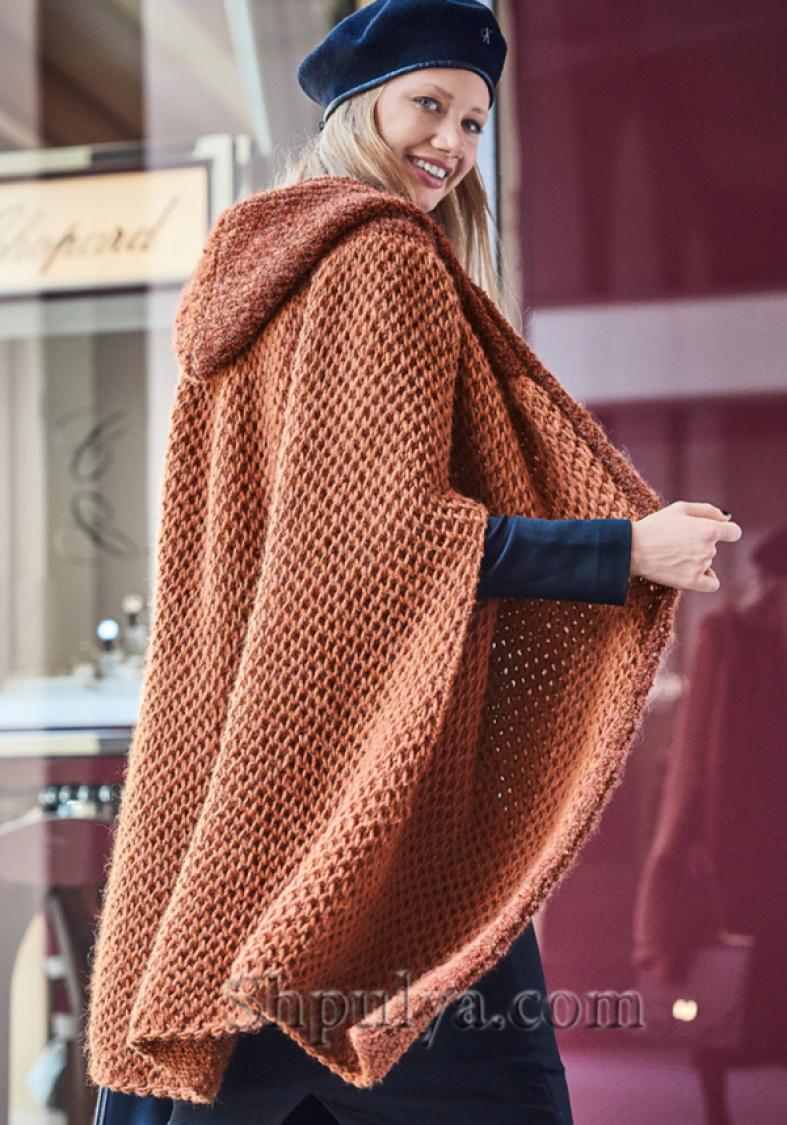 Пончо с капюшоном — Shpulya.com - схемы с описанием для вязания спицами и крючком
