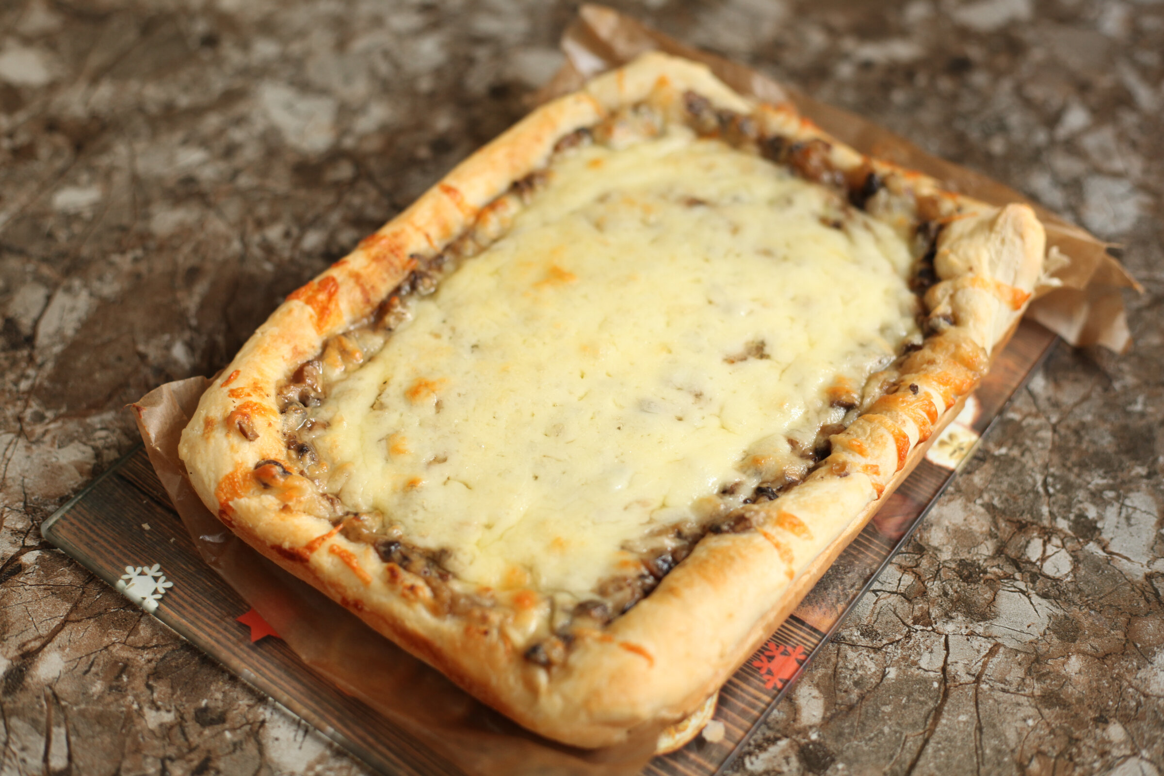 Пирог с картошкой и грибами из дрожжевого слоёного теста