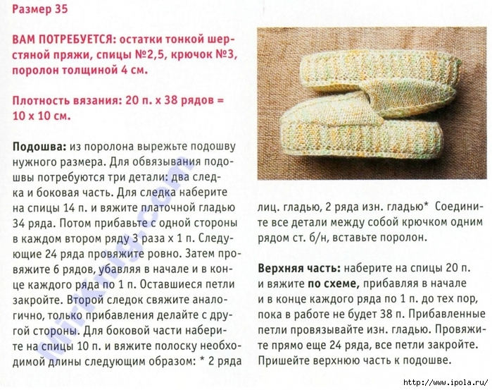 Вязаные шлёпанцы на толстой подошве и тапочки вязаные