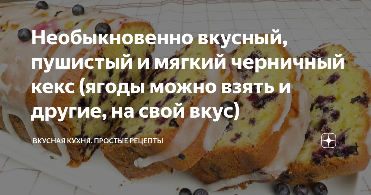 Необыкновенно вкусный, пушистый и мягкий черничный кекс (ягоды можно взять и другие, на свой вкус) Приготовив этот чудесный кекс, просто влюбилась в него. Мякиш нежный, пористый, почти невесомый и множественные темные вкрапления черники. Но можно использовать и другие ягоды, орехи, сухофрукты. И если вам понравились золотистые кусочки, порадуйте вкусной выпечкой свою семью. Ингредиенты: Способ приготовления: Просеиваю муку, добавляю разрыхлитель и перемешиваю. Чернику мо...