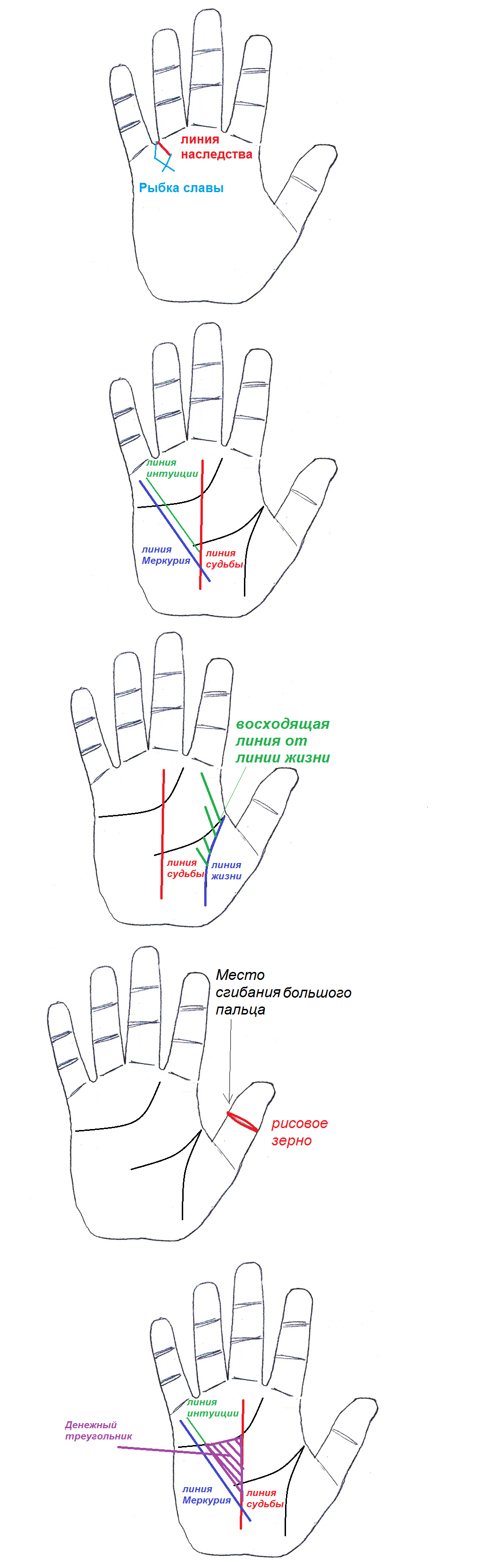 7 знаков богатства на руке. Способы найти клад на ладони У каждого из нас не одно, а сразу несколько пальцев на руках: большой палец, указательный палец и мизинец.