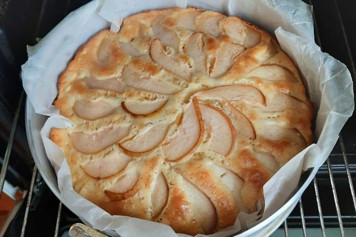 Пирог с грушами и яблоками на кефире. С приготовлением справится даже молодая хозяйка! Ингредиенты: Тесто: 250 мл кефира; 3 ст.л. сметаны; 1 яйцо; 200 г муки; 1 ч.л. разрыхлителя; щепотка соли; 100 г сахара; 1 ст. л. растительного масла 1 груша; 2 яблока (кисло-сладкие); сахар, корица — по вкусу. Начинка: 200 мл воды; 50 г сливочного масла; 50 мл растительного масла; 200 г сахара (для карамели); 50 г сливок (жирность 33%); 100 г орехов (грецкий, фундук). Приготовление: Смешиваем кефир, сметан…