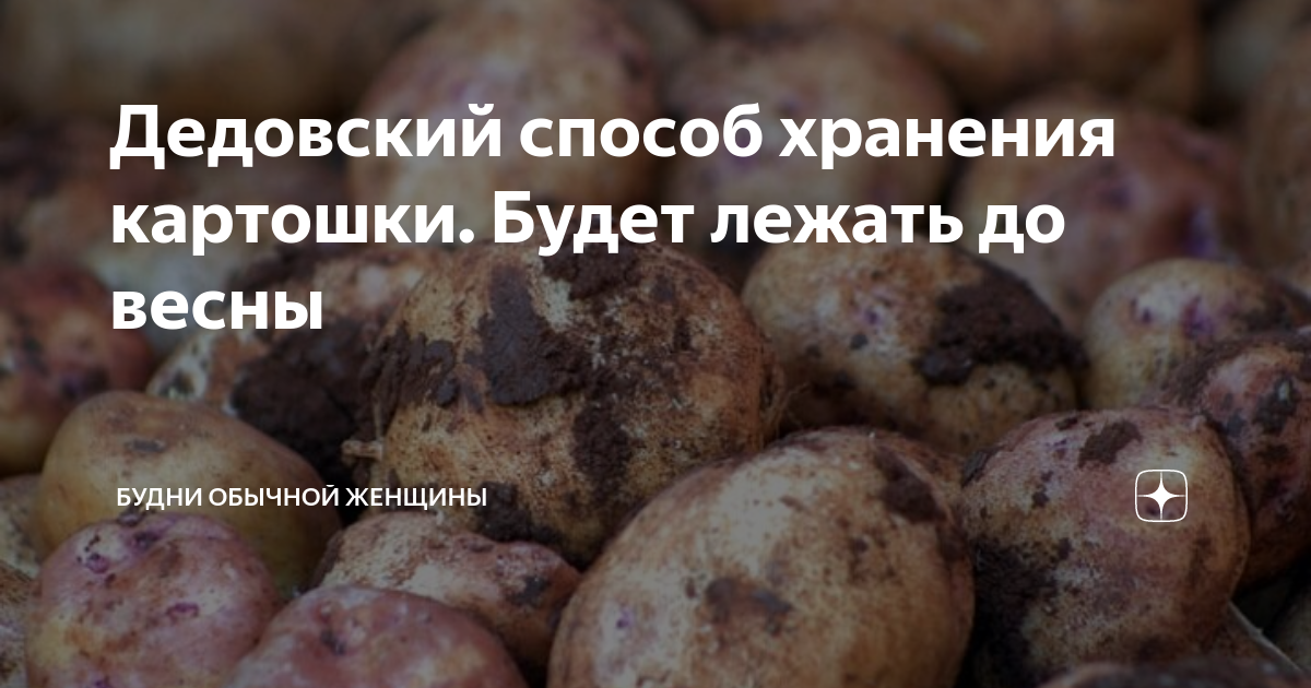 Дедовский способ хранения картошки. Будет лежать до весны Конец сентября - самое время заготовок к зиме свежих овощей. Все покупают картошку, лук, капусту, морковь. У кого-то свои овощи, с собственного огорода, но их тоже нужно каким-то образом хранить. Ведь зимой стоимость той же картошки увеличивается втрое, а в нынешних условиях - это безумно дорого. Сегодня я хочу рассказать, как хранить картошку чтобы она долежала без проблем до весны. Но сначала я хочу поделиться ...