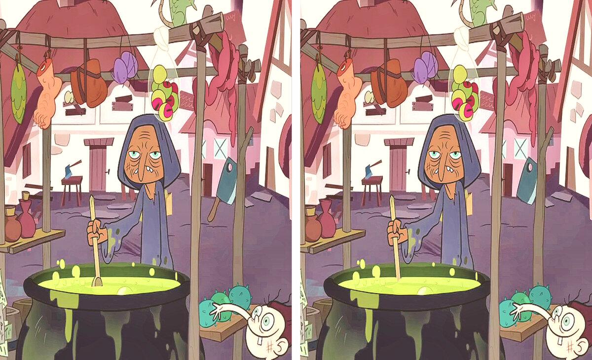 Найдите 4 отличия на картинке Чародейка. Тест на внимательность.