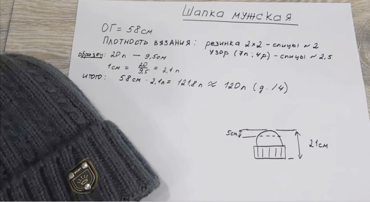Мужская шапка с отворотом (Вязание спицами) — Журнал Вдохновение Рукодельницы