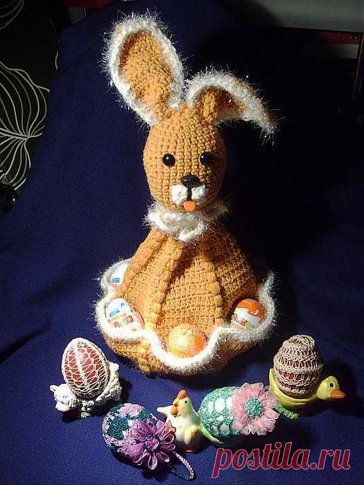 Пасхальный Заяц с кармашками для яиц Схема, описание и идеи.