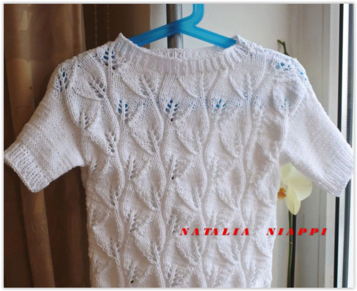Кофточка с узором "Нежные листья" спицами