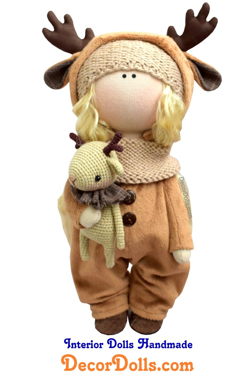 Deer Art Doll, Gift Tilda Doll, Baby Doll Handmade, Soft Fabric Doll, Rag Textile Doll, Cloth Nursery Doll, Interior Decor Doll by Olga G Hello, dear visitors!This is handmade cloth doll created by Master Olga G (Vinnitsa, Ukraine). Doll is made by Order.Order production time is 1-2 weeks. FREE SHIPPING TO ANY COUNTRYDoll is 29 cm (11,4 inch) tall and made of only quality materials.All dolls stated on the photo are made by Olga G.You can find them in our