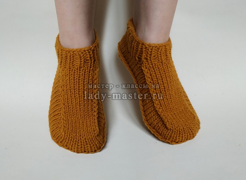 Тапочки -следки круговыми спицами с описанием для начинающих