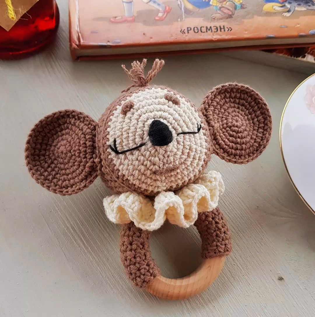 PDF Погремушка Чебурашка крючком. FREE crochet pattern; Аmigurumi toy patterns. Амигуруми схемы и описания на русском. Вязаные игрушки и поделки своими руками #amimore - Чебурашка из детского мультфильма Крокодил Гена и его друзья, погремушка в виде чебурашки.
