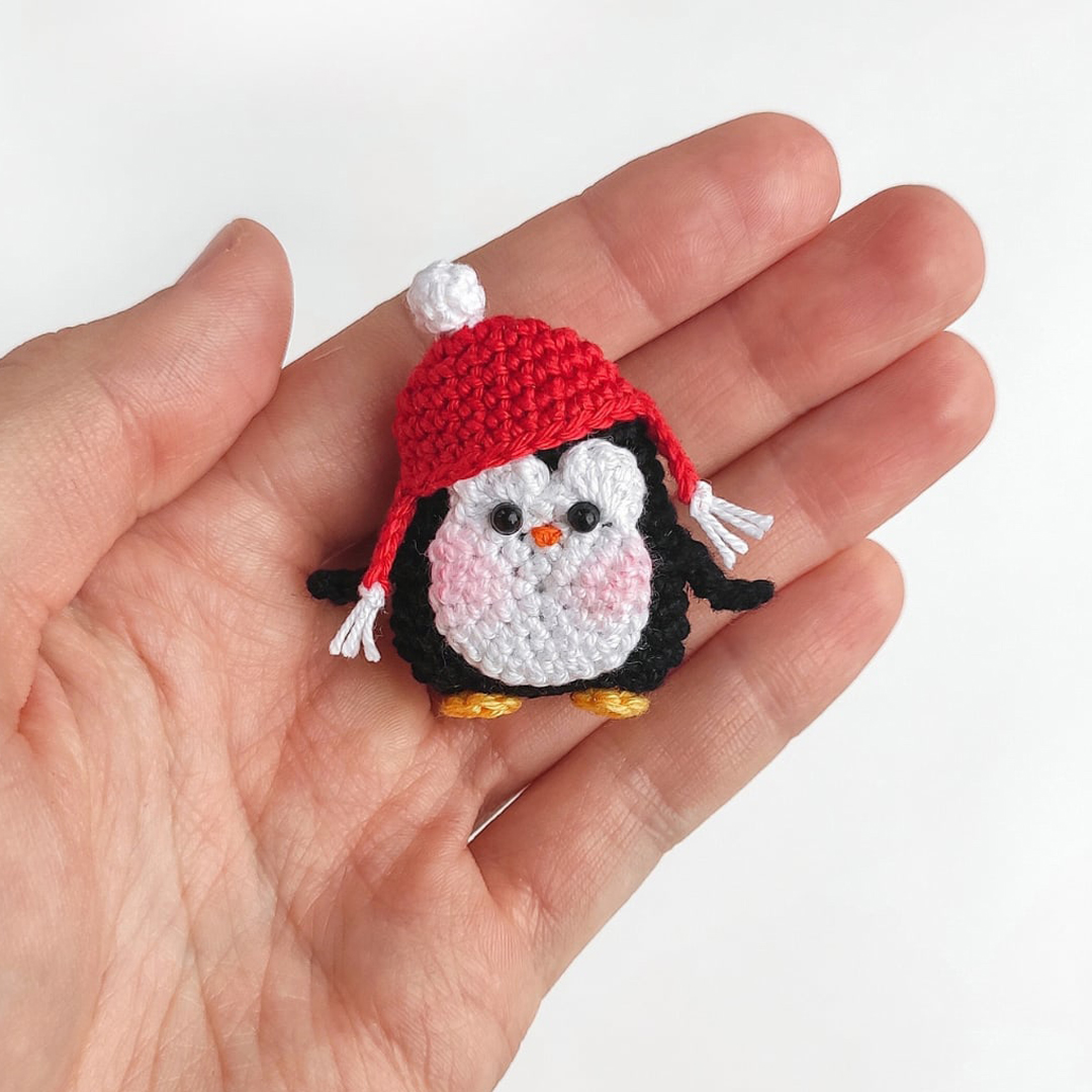 PDF Брошь "Пингвин" крючком. FREE crochet pattern; Аmigurumi toy patterns. Амигуруми схемы и описания на русском. Вязаные игрушки и поделки своими руками #amimore - маленькая брошь в виде пингвина, пингвинята, пингвинчик, пингвинёнок.