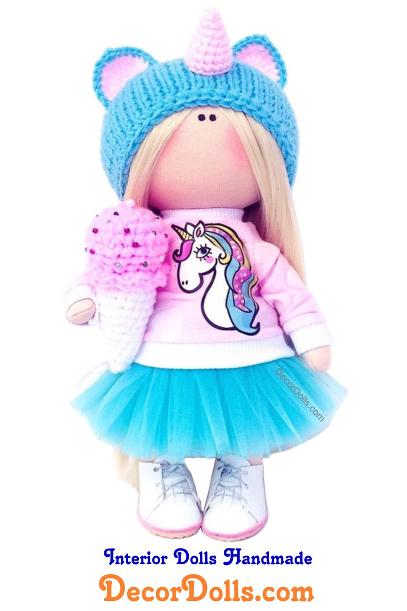 Unicorn Doll Handmade for Nursery Decoration, Unique and Original Gift Idea for Kids by Irina S Hello, dear visitors!This is handmade cloth doll created by Master Irina S (Krasnodar, Russia). Doll is made BY ORDER. Order production time is 5 - 7 days. FREE SHIPPING TO ANY COUNTRYDoll is 28 cm (11.02 inch) tall and made of only quality materials.You can find them in our shop searching by artist name, stated in th