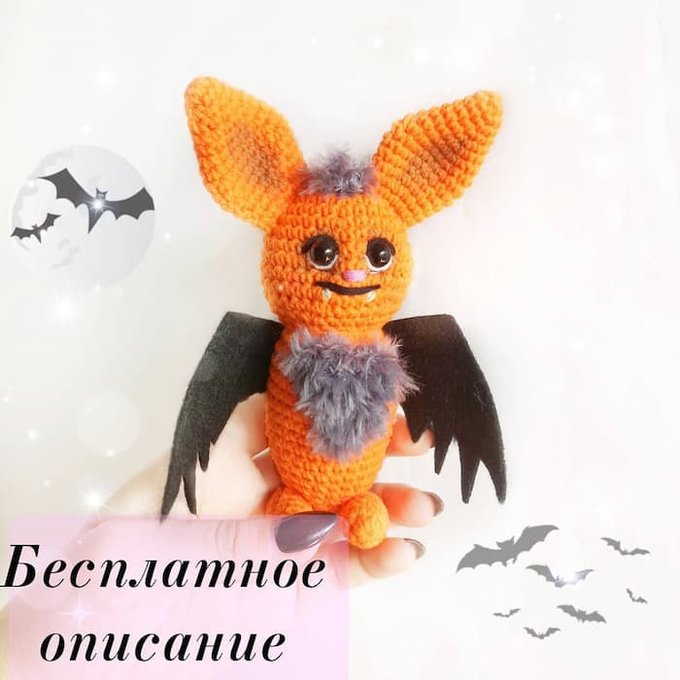 Бесплатный мастер-класс по вязанию Летучая мышь крючком. Автор - @akvarelka_toys.