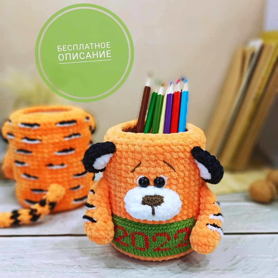PDF Карандашница Тигрёнок крючком. FREE crochet pattern; Аmigurumi animal patterns. Амигуруми схемы и описания на русском. Вязаные игрушки и поделки своими руками #amimore - плюшевая карандашница в виде тигра, маленький органайзер, тигрёнок из плюшевой пряжи, котик, кот, кошечка, кошка, котенок.