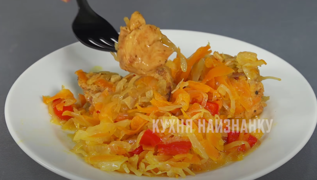 Простой рецепт из курицы, который понравится любителям капусты: готовлю быстрый и вкусный ужин в сковороде (курица под овощами) | Кухня наизнанку | Яндекс Дзен