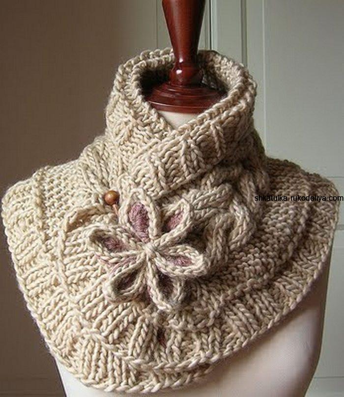 Шарф воротник спицами. Шарф манишка женский спицами