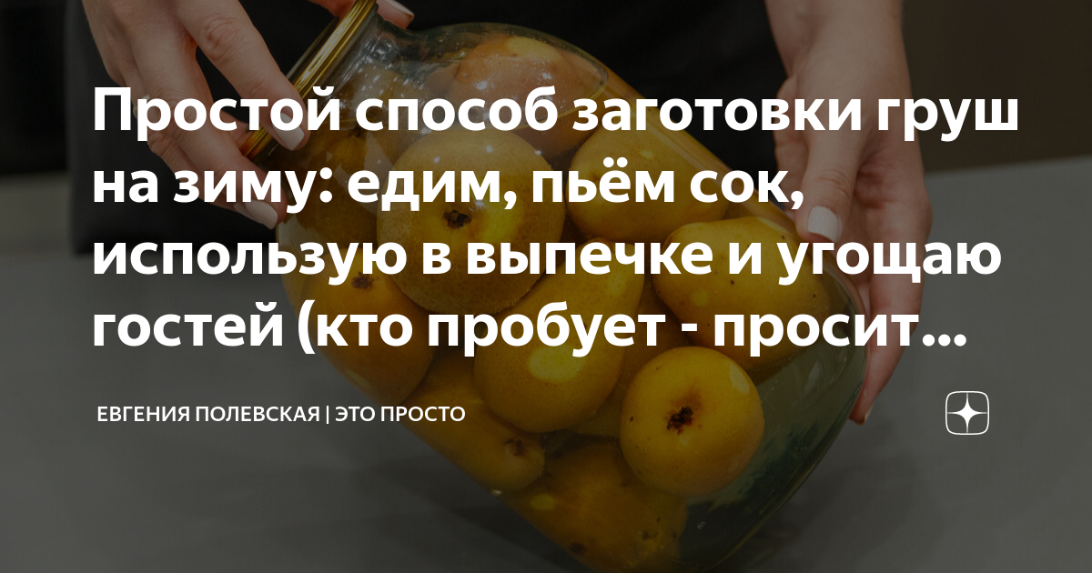 Простой способ заготовки груш на зиму: едим, пьём сок, использую в выпечке и угощаю гостей (кто пробует - просит рецепт) У моего папы посажено очень много груш, есть даже одно дерево, которое сажал ещё мой дедушка и до сих пор оно плодоносит. Груши ароматные и сочные. Мама каждый год закрывала по 30 банок груш в сиропе. Какие же они вкусные, но отдельного внимания заслуживает грушевый сок. Мы с сестрой выпивали сначала его, а потом ели груши)) Теперь консервированные груши...