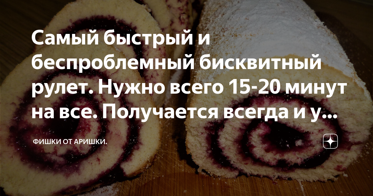Самый быстрый и беспроблемный бисквитный рулет. Нужно всего 15-20 минут на все. Получается всегда и у всех. Начиняем по вкусу. Про 20 минут - не преувеличение, рулет будет полностью готов за это время, если, конечно, никто не будет мешать и отвлекать. Это, пожалуй, самый мой любимый и "ходовой" рецепт сладкой выпечки. Пеку рулет уже лет двадцать пять, и всегда успешно (Ну ладно-ладно, сжигала пару раз). Начинку для рулета можно брать по вкусу. Это может быть любой джем. Мн...