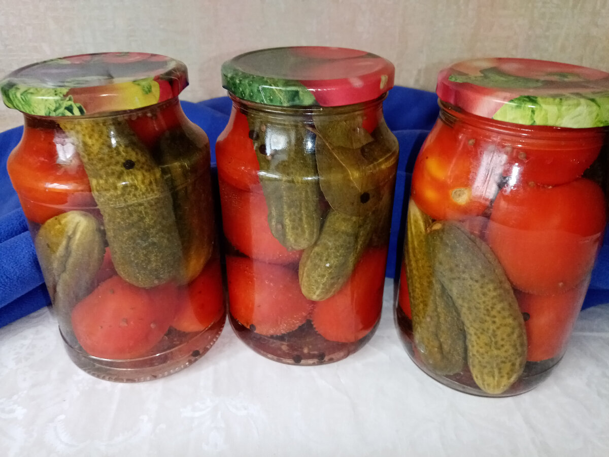 Огурцы с помидорами на зиму в одной небольшой банке (оригинальный маринад на 1 л воды) | Кулинарные записки обо всём | Пульс Mail.ru Иногда зимой хочется одновременно съесть вкусный маринованный ароматный помидорчик, чтобы брызнуло соком и маринадом во все стороны. А еще и...