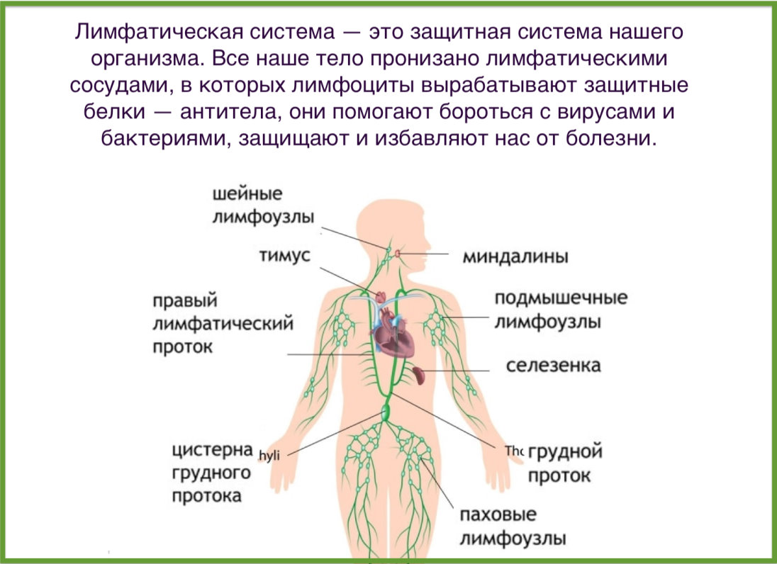 Очищение лимфы в домашних условиях Как работает лимфатическая система Лимфатическая система включает: — лимфатические капилляры; — лимфатические узлы; — лимфатические органы: селезенка, тимус (вилочковая железа) и миндалины; — собственно лимфу. Работа лимфатической системы для дилетантов схематически выглядит так: лимфа забирает из клеток межклеточную жидкость гонит ее по сосудам к лифатическим узлам там она отфильтровывается (очищается) возвращается очищенной (и обогащенной) в кровь. Вс