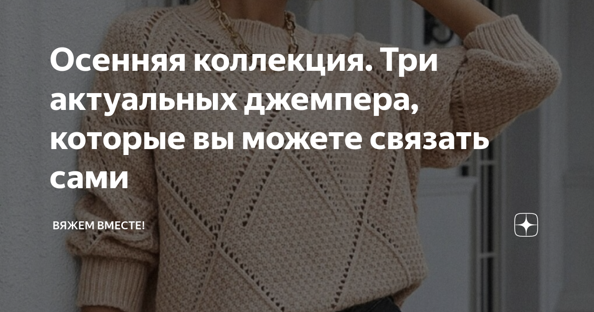 Осенняя коллекция. Три актуальных джемпера, которые вы можете связать сами В прошлой статье я уже писала про одну интересную модель с простым ажурным узором из магазина Шейн. Сегодня я предлагаю сразу три варианта на выбор, которые вы можете связать самостоятельно. Джемпер с ромбами и жемчужной вязкой Интересная и одновременно простая модель с крупными раппортами ажурных диагоналей, формирующих крупные ромбы на фоне жемчужной вязки. Такой узор вяжется просто, а выглядит по...