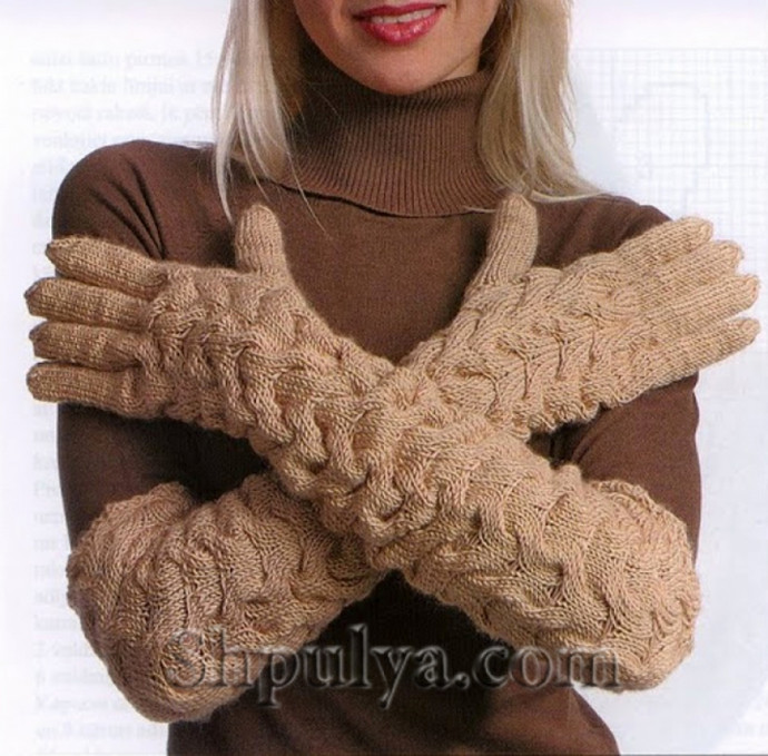 Перчатки "Крылья голубки", вязаные спицами - схемы с описанием