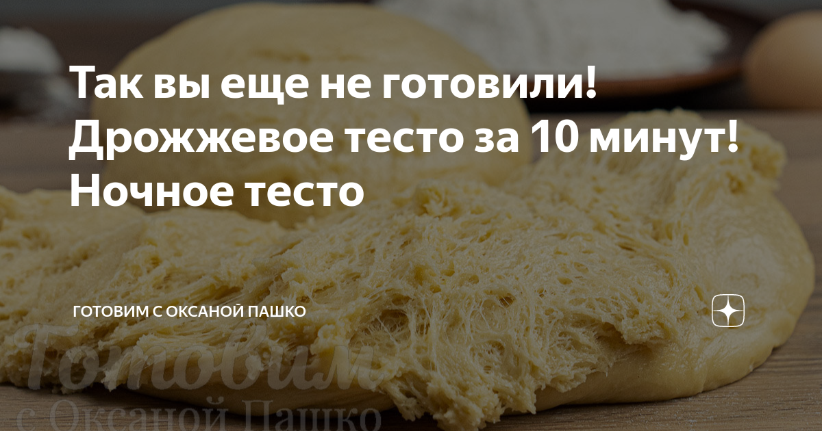 Так вы еще не готовили! Дрожжевое тесто за 10 минут! Ночное тесто Ночное дрожжевое тесто — это очень быстрый и удобный вариант сдобного теста для домашней выпечки. Это тесто получается пористым и удобным в работе. А пирожки, пироги и булочки всегда выходят мягкими, пушистыми и очень вкусными.