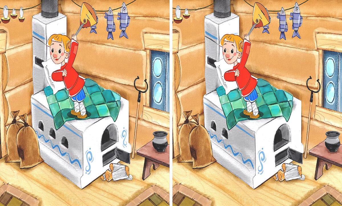 Найдите 4 отличия на картинке Мальчик на Печи. Тест для внимательных.