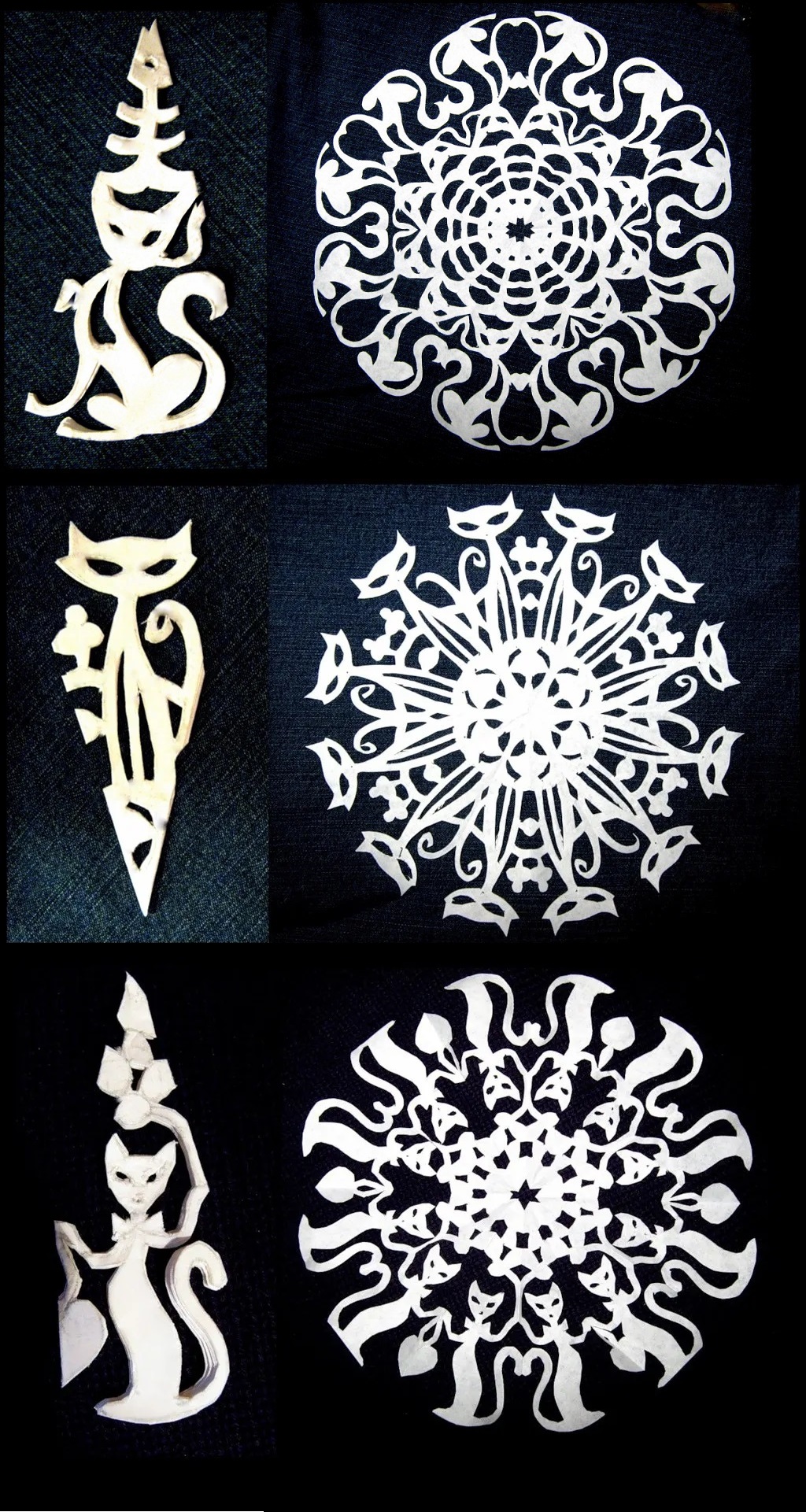Схемы для вырезания снежинки с кошкой