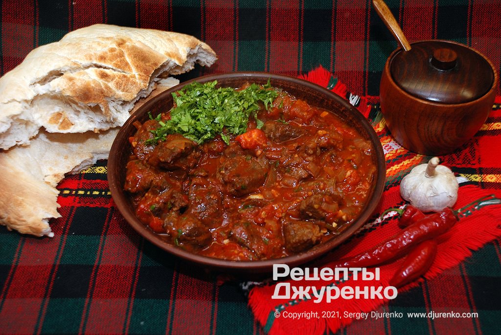 Чашушули - тушеная с большим количеством томата говядина Подробнее
