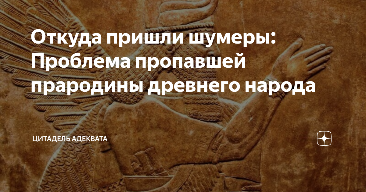 Откуда пришли шумеры: Проблема пропавшей прародины древнего народа Есть гипотеза, что шумеры пришли в Междуречье с берегов Инда, в то время населённых дравидскими, а значит, чернокожими племенами. Но эта очень полезная, ибо вызывающая бурление в рядах расово неравнодушной публики, гипотеза, к сожалению, не нашла подтверждения. Проблема же происхождение шумеров — остаётся. Хотя и понимается чаще всего ложно. Ибо касается происхождения народа, а не цивилизации. Всякую пробл...