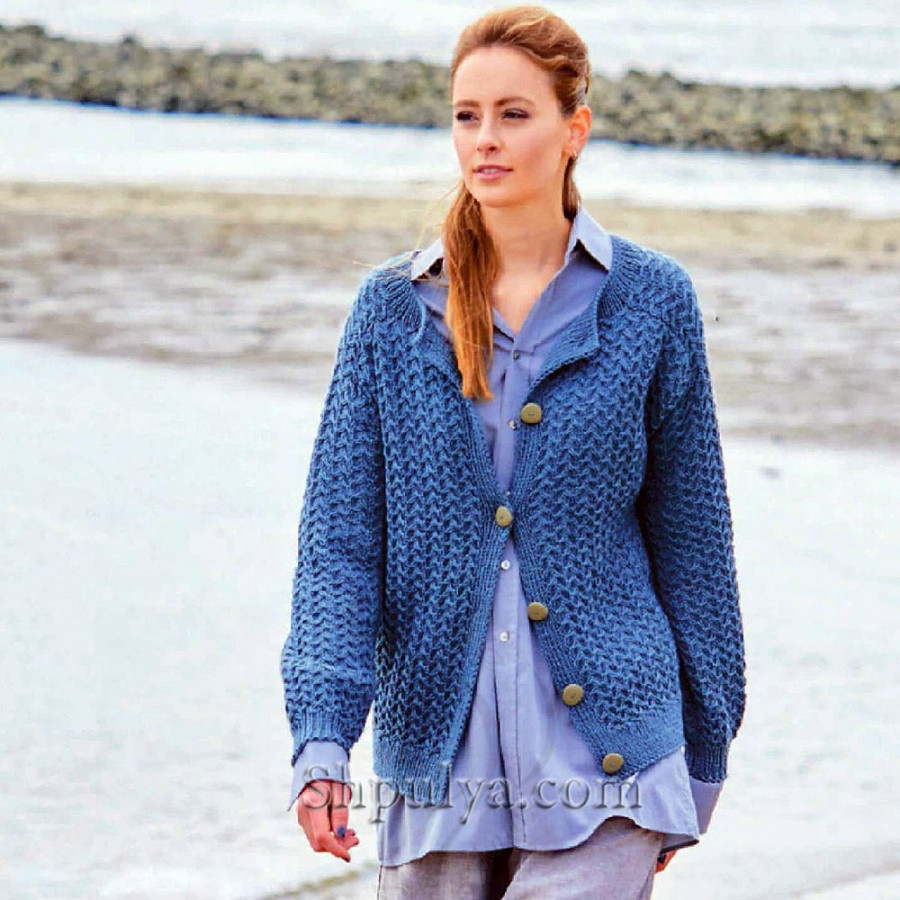 Голубой жакет с фантазийными «косами» — Shpulya.com - схемы с описанием для вязания спицами и крючком