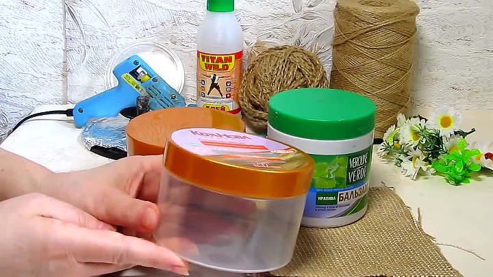 Шкатулка - корзинка своими руками из джута и пластиковой баночки