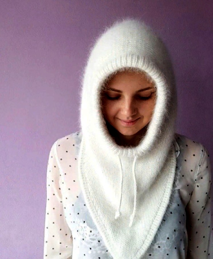 МК двойной зимний капор из пуха норки спицами с большим треугольным снудом (Вязание спицами) — Журнал Вдохновение Рукодельницы