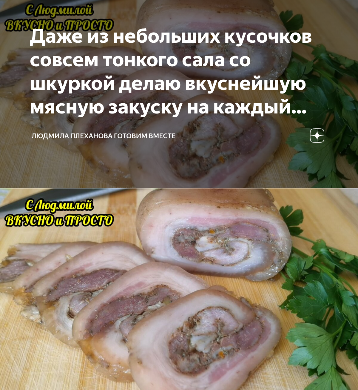 Даже из небольших кусочков совсем тонкого сала со шкуркой делаю вкуснейшую мясную закуску на каждый день и на праздничный стол | Людмила Плеханова Готовим вместе | Яндекс Дзен