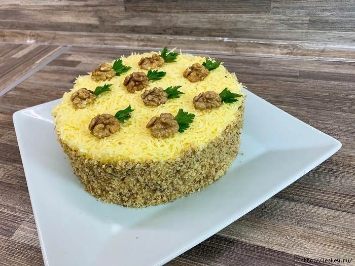СЛОЁНЫЙ САЛАТ С КУРИЦЕЙ В ВИДЕ ТОРТА