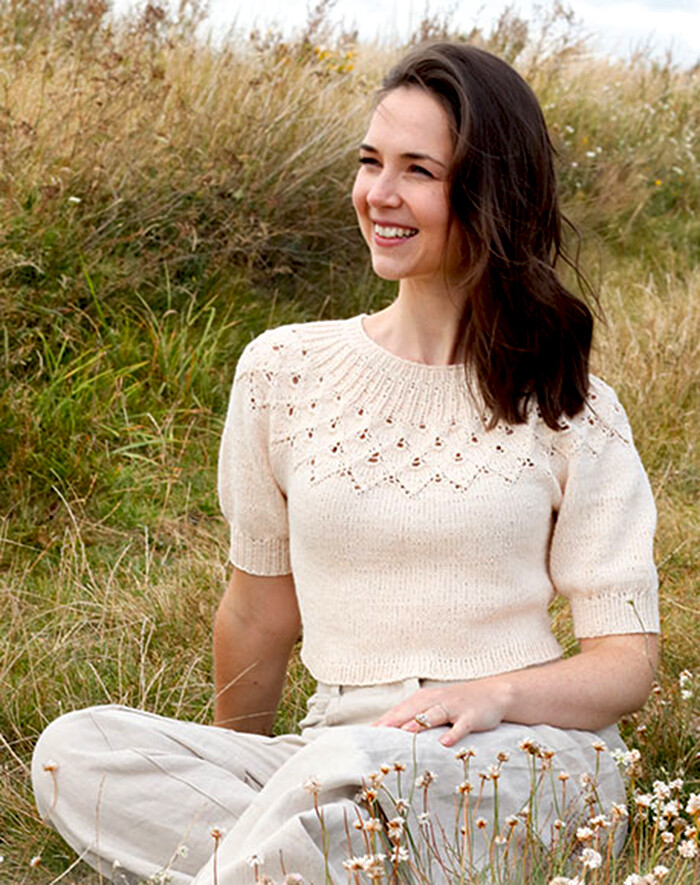 Топ с круглой ажурной кокеткой с узором из листьев (Вязание спицами) — Журнал Вдохновение Рукодельницы
