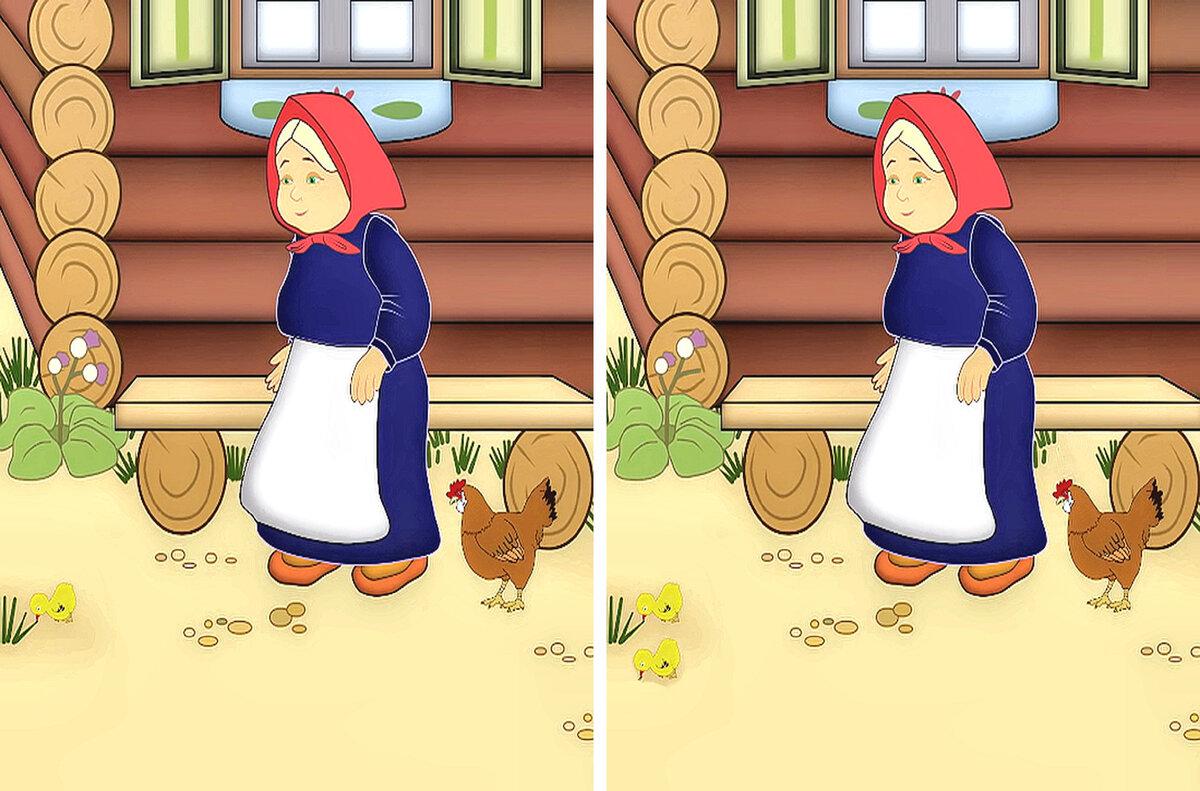 Найдите 5 отличий на картинке с Бабулей. Разминка для ума.