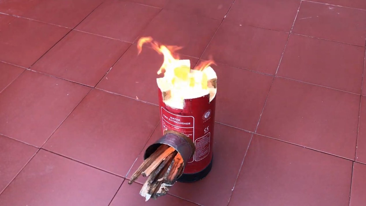 Ракетная печь из огнетушителя Приветствую всех любителей помастерить, предлагаю к рассмотрению инструкцию по изготовлению маленькой, но энергоэффективной печи из баллона огнетушителя. Если внутреннюю часть топки утеплить, температура внутри печи во время горения будет очень высокой, что позволит топить сырыми палками, да и