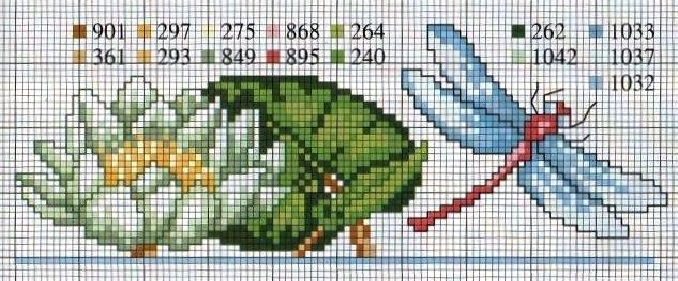 Лотос и стрекоза - вышивка крестом