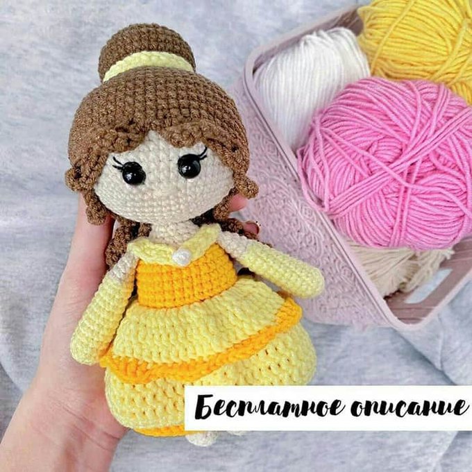 Бесплатный мастер-класс по вязанию Принцесса Белль крючком. Автор описания - @vivi_toys.