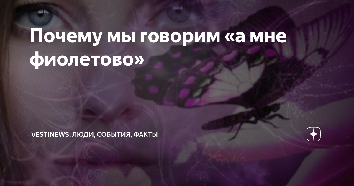 Почему мы говорим «а мне фиолетово» Когда мы говорим "мне фиолетово", то тем самым обозначаем полное безразличие к теме, которая возникает в разговоре или к новости, которую услышали к примеру, по телевизору. В общем всё то, что именно вам в данный момент безразлично. Здесь встаёт важный и интересный вопрос: Почему именно фиолетовый цвет, а не другая цветовая гамма. Отвечая на этот вопрос, мы сразу же встречаем несколько версий