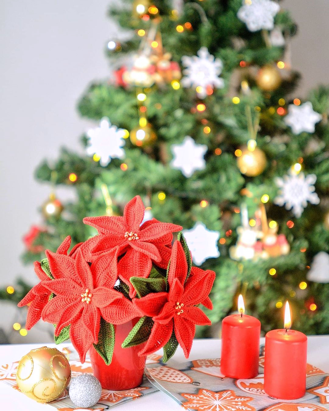 PDF Рождественская звезда крючком. FREE crochet pattern; Аmigurumi toy patterns. Амигуруми схемы и описания на русском. Вязаные игрушки и поделки своими руками #amimore - украшение к Новому году, букет, цветы, рождественская звезда.