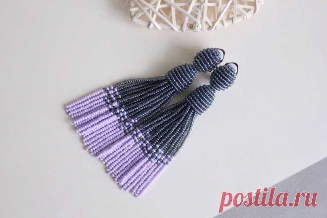 Серьги-кисти из бисера в стиле Оскар Де Ла Рента – заказать на Ярмарке Мастеров – CR3A5RU | Серьги-кисти, Уфа Серьги-кисти из бисера в стиле Оскар Де Ла Рента. в интернет-магазине на Ярмарке Мастеров. Серьги-кисти из бисера в стиле Оскар Де Ла Рента. Сочетание серого и сиреневого цветов. Сделаны из чешского бисера Preciosa. На заказ возможно любое цветовое сочетание. Длину также можно сделать любую. Серьги на клипсах с силиконовыми подушечками, очень комфортны в носке, не жмут и не спадают.
