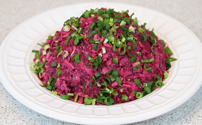 Минутный витаминный салат салат со свеклой на каждый день. Достаточно добавить сыр, яйца и чеснок