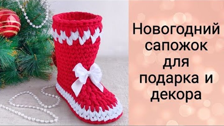 ЛУЧШИЙ ПОДАРОК НА НОВЫЙ ГОД| САПОЖОК САНТЫ| Новогодний сапожок крючком